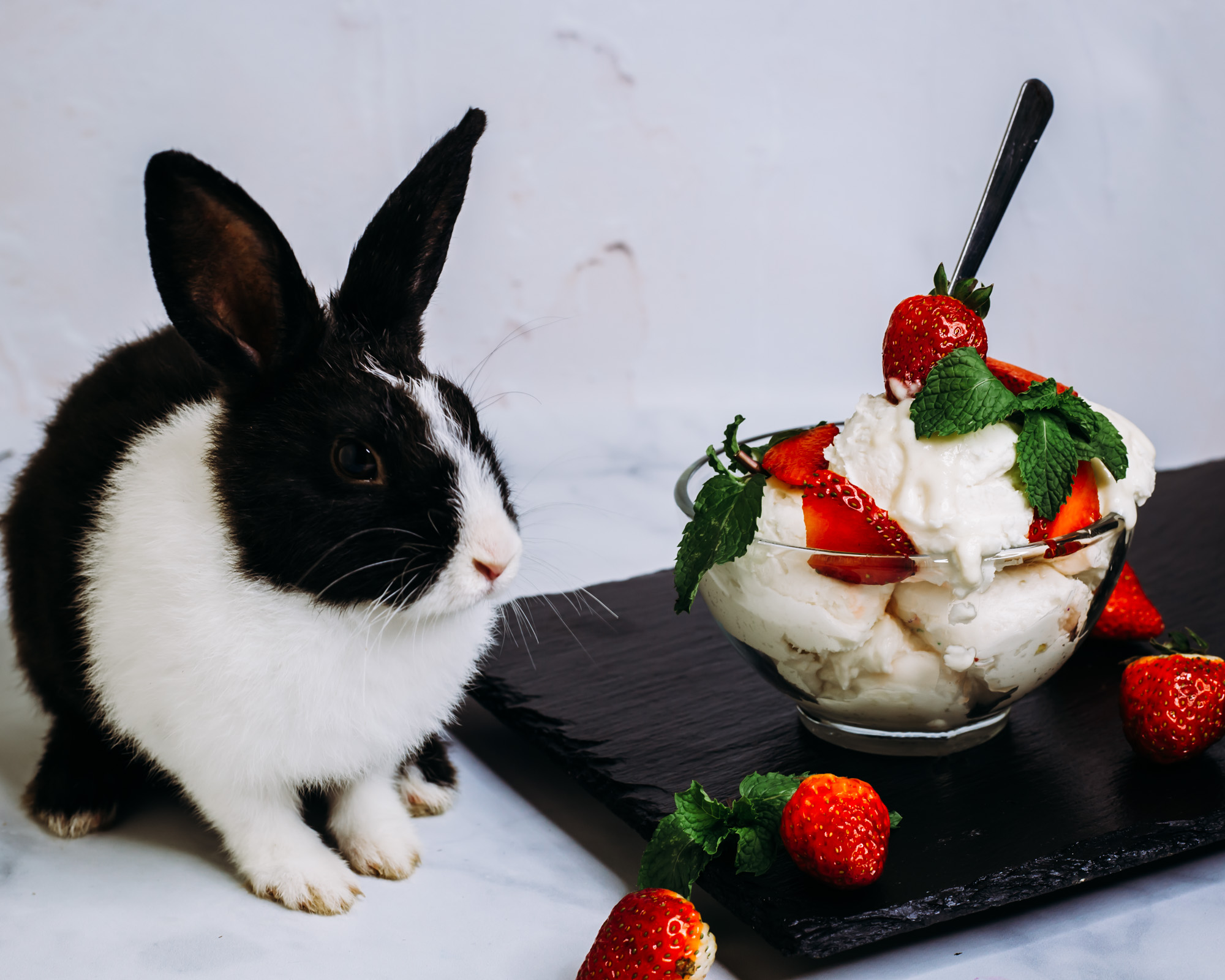 I was finishing up with the strawberries and my kids were playing with Oreo, the bunny. So the idea struck me, why not throw her in the scene too?