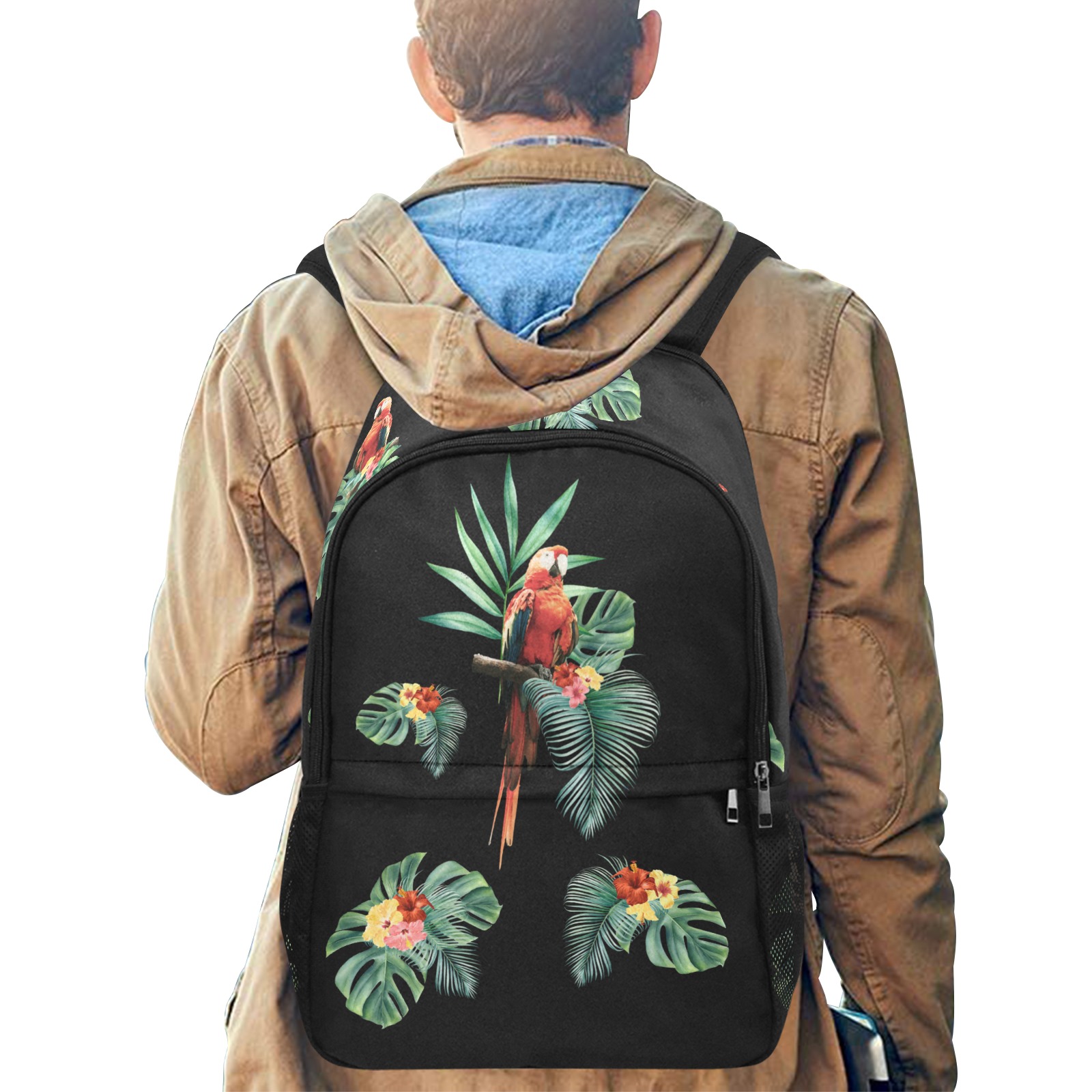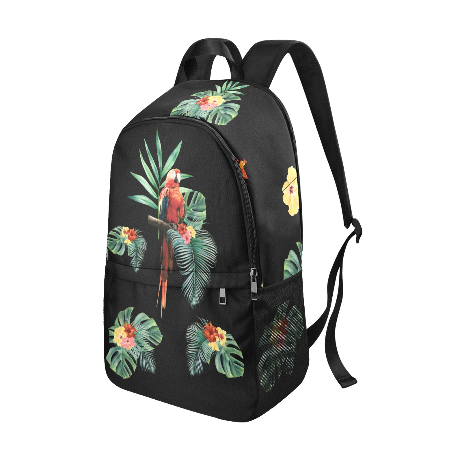 - New fabric backpack with two side mesh pockets for your umbrella, water bottle, etc.